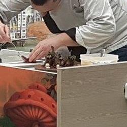 Ha gustado a los visitantes de la muestra, la nueva exposición diseñada por María Jesús Latorre, quien regenta en Almazán el comercio de La Bolsa Amarilla. Ella ha querido ambientar la colección de setas en un bosque más abierto, con jardineras y distintos enseres, entre hojas, muérdago, jara y helechos.