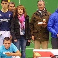 En la entrega de trofeos, se tuvo un reconocimiento con Tomás Martín Gómez, presidente que ha sido durante casi tres décadas de la Federación de Pelota en Castilla y León, y se le hizo entrega de una talla realizada por Alfredo Ceña.